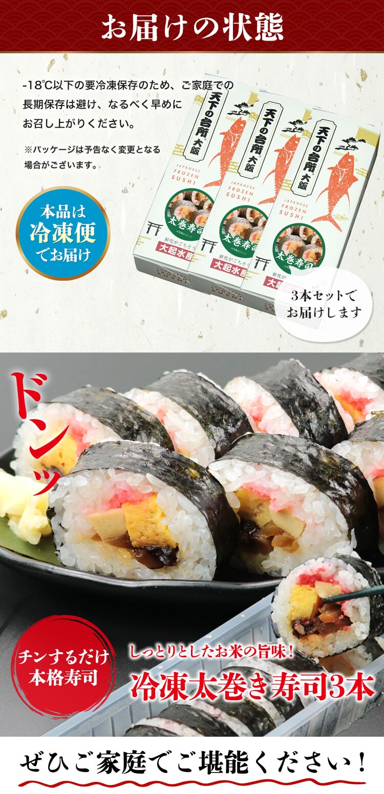 冷凍太巻寿司 3本セット 巻寿司 太巻き すし 寿司 レンチン 大起水産 自然解凍 化粧箱入