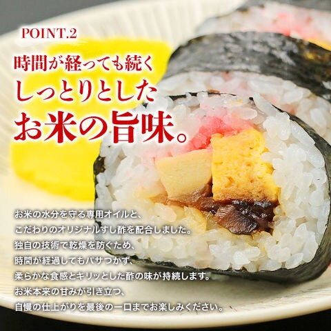 お米の水分を守る専用オイルと、こだわりのオリジナルすし酢を配合しました。