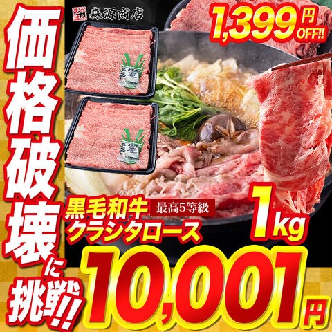 黒毛和牛 5等級 クラシタロース 1㎏ (500g×2) 国産 和牛 肩ロース スライス しゃぶしゃぶ すき焼き 霜降り 【最安値挑戦!11400円→1399円OFF★10001円セール】