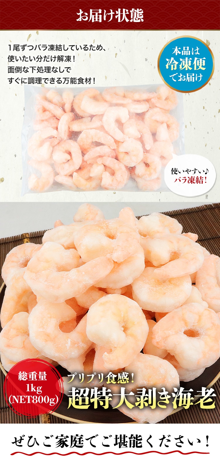 特大 むきえび 総重量1kg (解凍後800g) 加熱用 エビ えび 海老 剥きえび バナメイエビ バーベキュー BBQ ギフト お歳暮 お取り寄せグルメ 食品【最安値挑戦!100円OFF★3380円→3280円セール】<年末指定可>