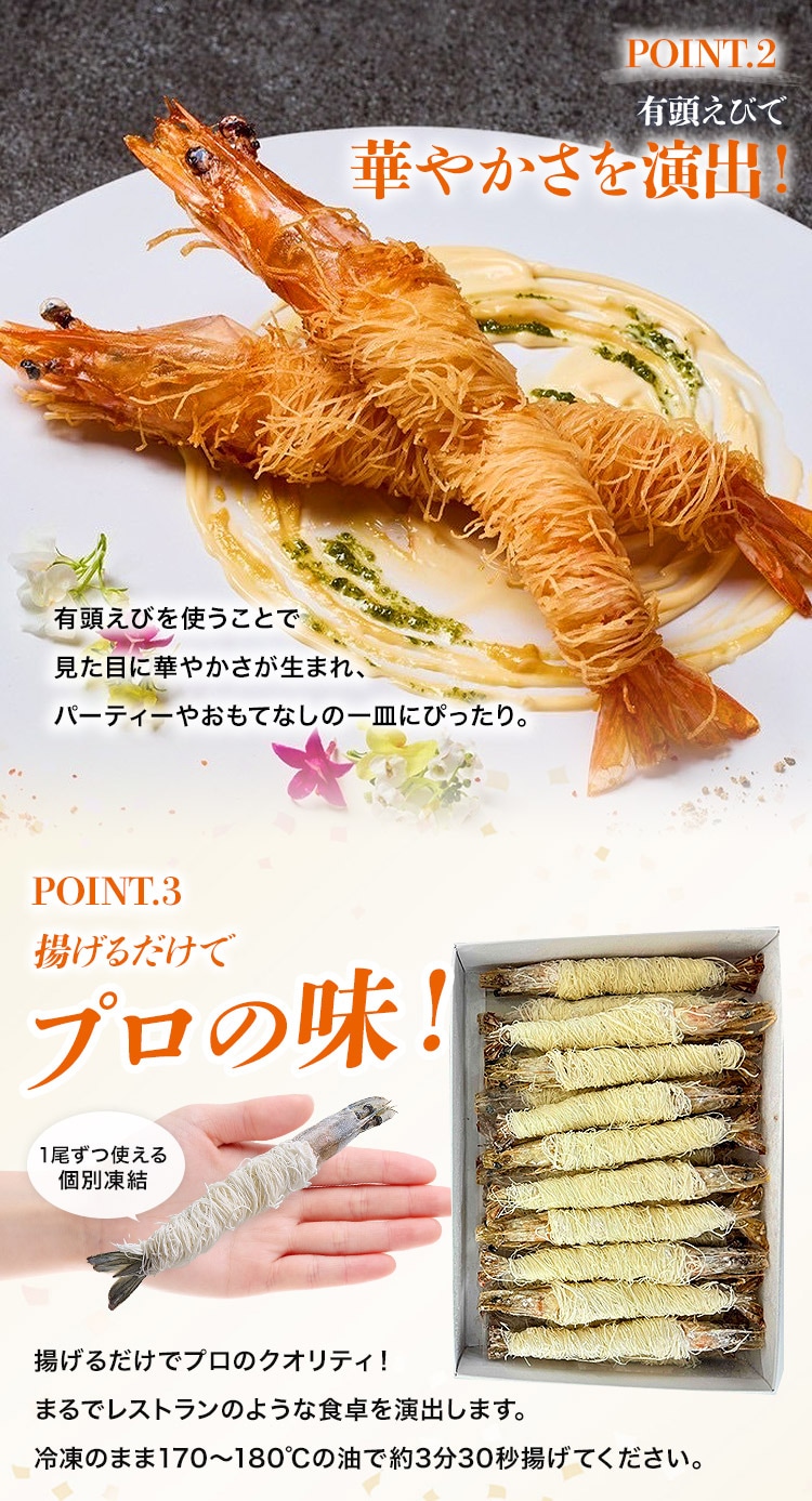 有頭えびを使うことで、見た目に特別感と華やかさをプラス。