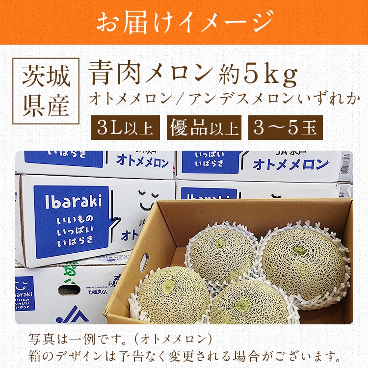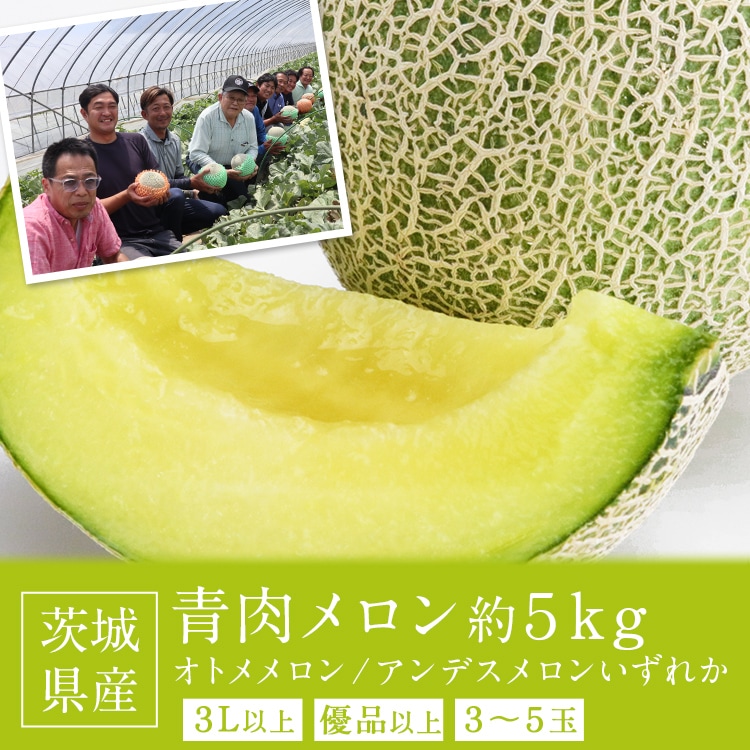 メロン 茨城県産 5kg (3~5玉入) アンデスメロン オトメメロン 青肉メロン 3L以上 優以上 産直 常温便【4月下旬~6月下旬頃・期間内出荷予定】