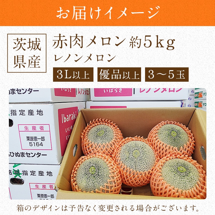 メロン 茨城県産 5kg (3~5玉入り) レノンメロン 3L以上 優以上 赤肉メロン 産直 常温便【5月中旬~6月下旬頃・期間内出荷予定】