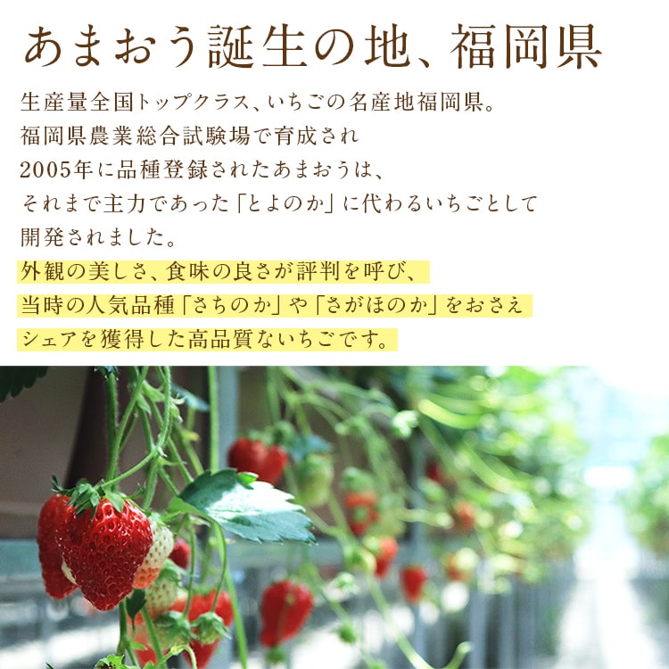 あまおうは、福岡県で誕生した福岡S6号という品種のいちごです。