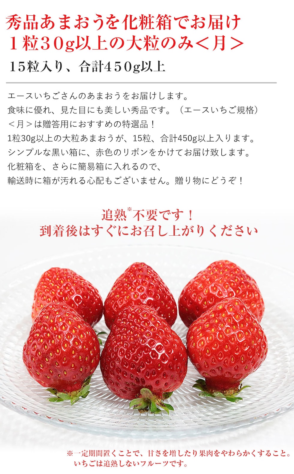 福岡県産 あまおう いちご 大粒 15粒入り 450g以上 月 1粒30g以上 贈答用 化粧箱 秀品 イチゴ 苺 エースいちご 産地直送 送料無料 産直