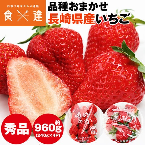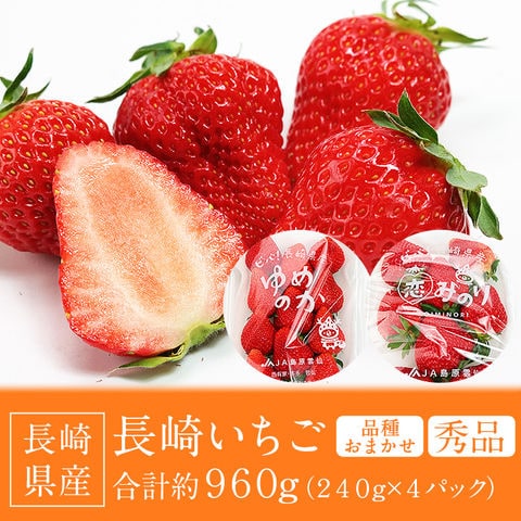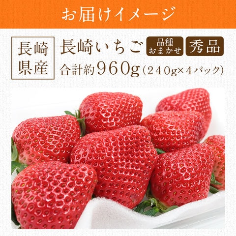 長崎いちご 長崎県産 4パック 約960g (1パック約240g×4) ゆめのか 恋みのり 品種おまかせ 秀品 L/2L イチゴ 苺 冷蔵便