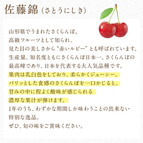 さくらんぼ 500g 佐藤錦 山形県産 秀品 Mサイズ 露地栽培 贈り物 贈答 サクランボ 産直【6月中旬~下旬頃・期間内出荷予定】のレビュー