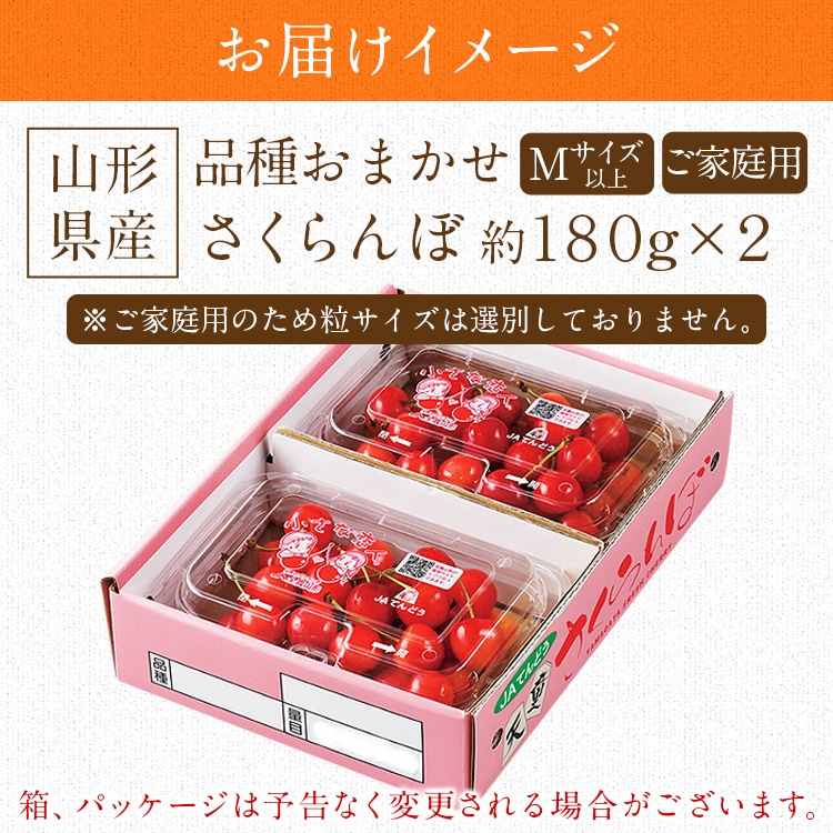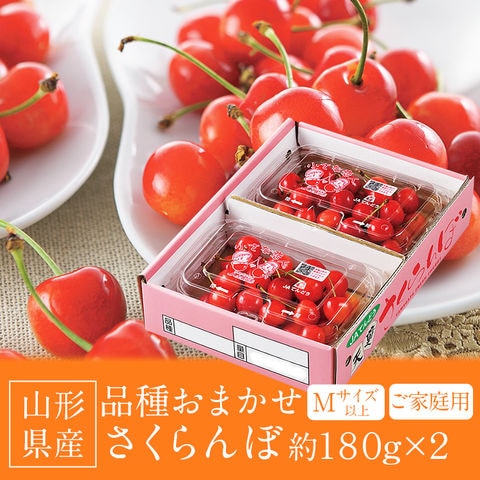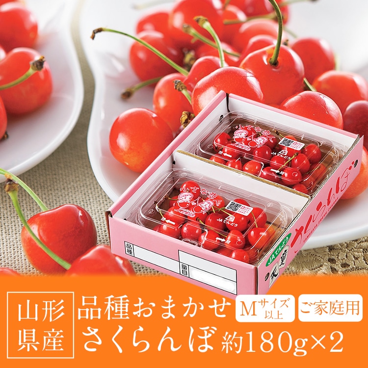 さくらんぼ 約180g×2パック 山形県産 ご家庭用 品種おまかせ サイズ無選別 Mサイズ以上 露地栽培 サクランボ 訳あり 産直【6月上旬~下旬頃・期間内発送予定】