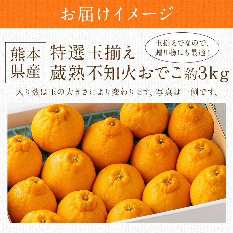 不知火 3kg 化粧箱 熊本県産 玉揃え蔵熟 おでこ 特選 しらぬい しらぬひ 産直 指定日不可【予約受付中、2月上旬頃~出荷開始予定】