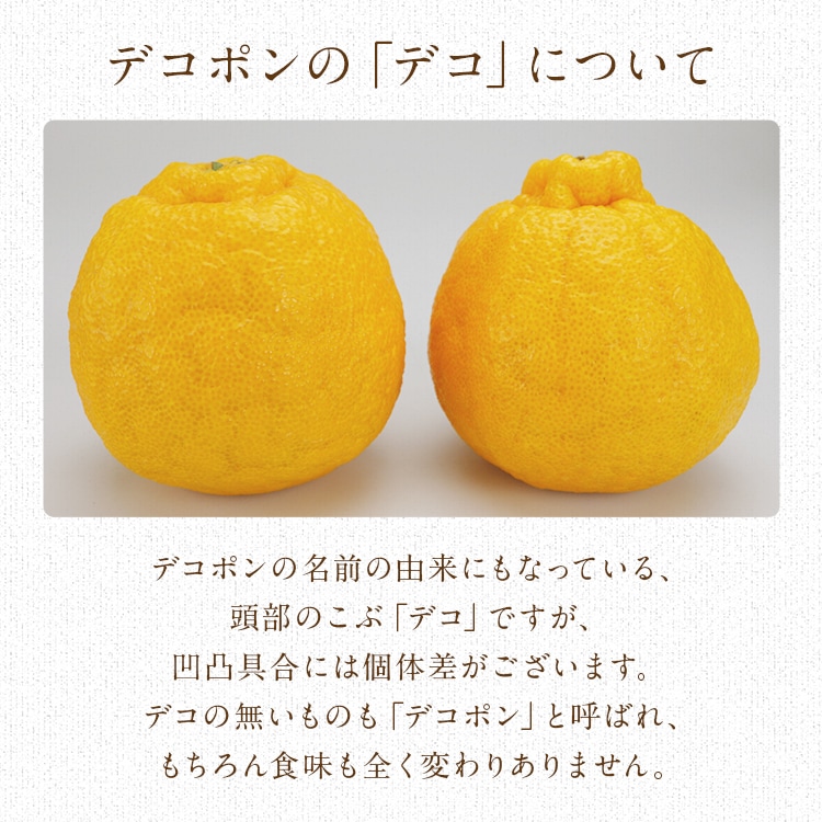 | 【商品名】お値打ち完熟デコポン 【産地】熊本県 【内容量】約2.5kg(8ー12玉程度) 【等級】無印(皮目の傷、黒点が比較的多くあります。ご自宅用にどうぞ。) 【配送タイプ】常温便 【賞味期限】生鮮品の為、賞味期限の記載なし 【注意事項】 ※箱のデザインは予告なく変更される場合がございます。 ※デコポンのシールは貼らずに同梱しています。 ※デコの凹凸具合は個体差がございます。味は変わりません。 |