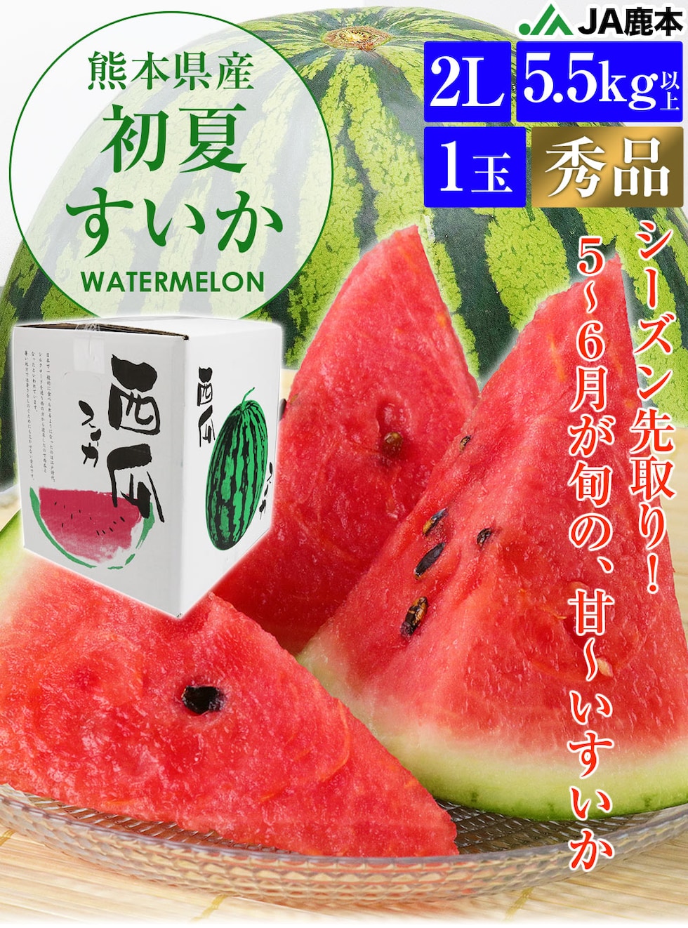 すいか 熊本県産 秀品 1玉 2Lサイズ 5.5kg以上 西瓜 スイカ JA鹿本 常温便