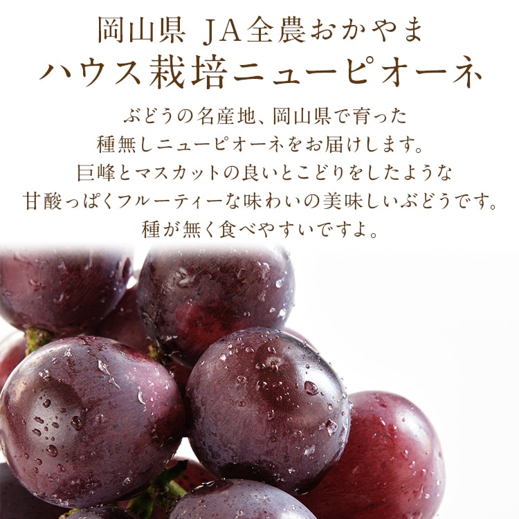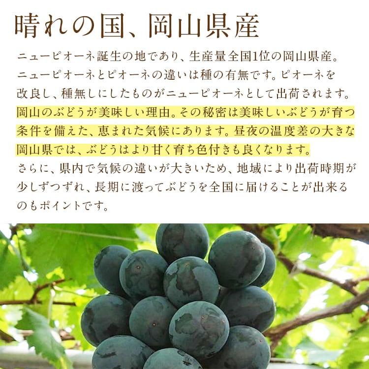 ニューピオーネ誕生の地であり、生産量全国1位を誇る、岡山県で育ったニューピオーネをお届けします。