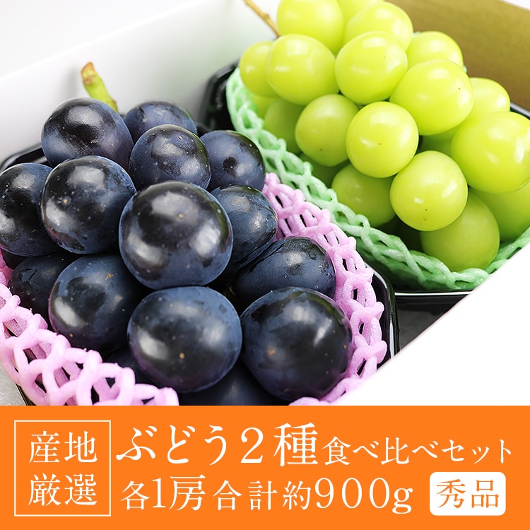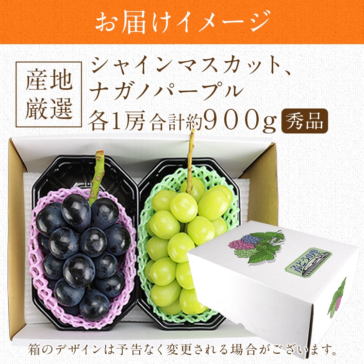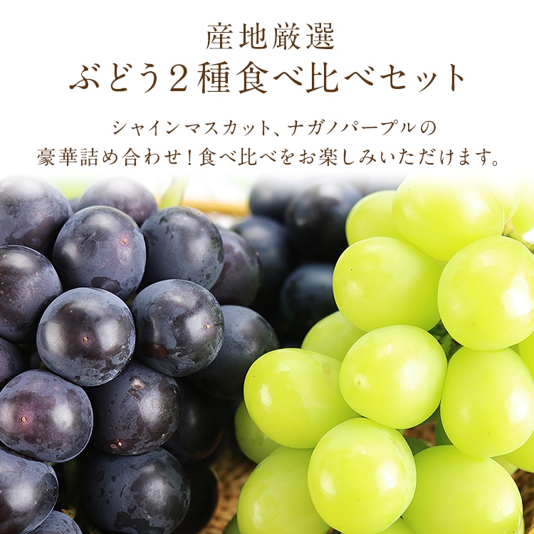 ぶどう2種セット 900g以上 2房(1房×2種) シャインマスカット ナガノパープル 秀 産地厳選 化粧箱 種無し 冷蔵便