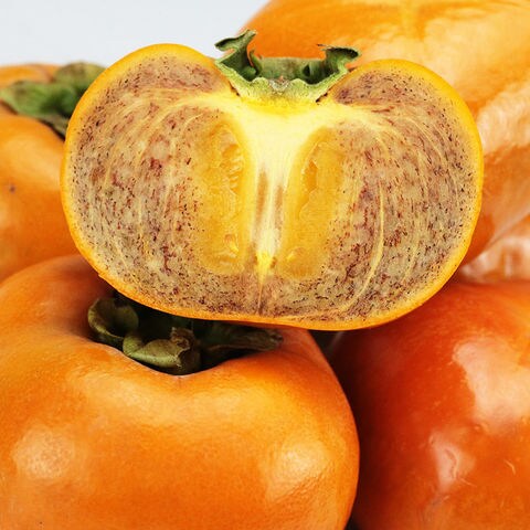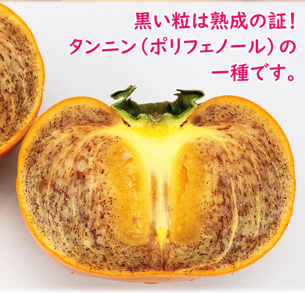 濃い紅色の果皮を切るとあらわれる、黒い果肉が特徴的な紀ノ川柿ですが