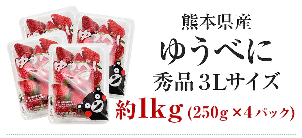 ゆうべに いちご 熊本県産 4パック 約1kg (1パック約250g×4) 秀品 3Lサイズ イチゴ 苺 冷蔵便