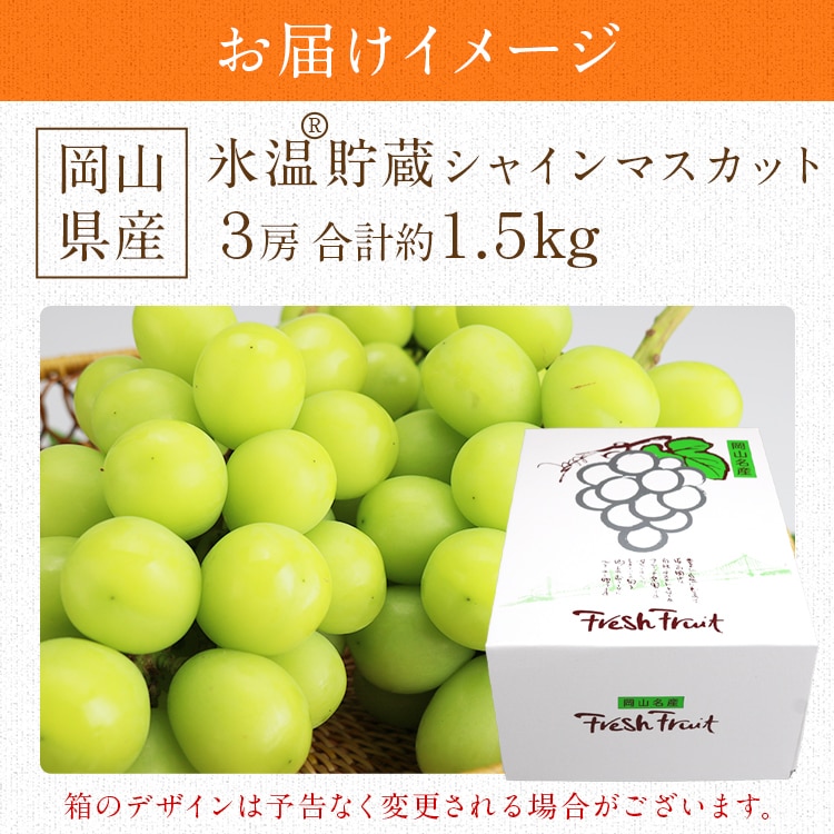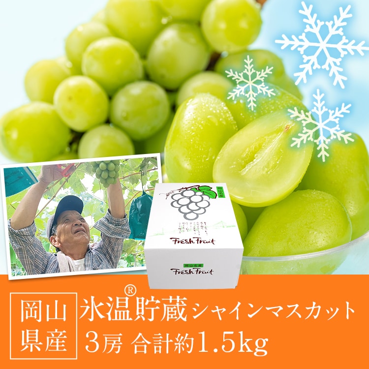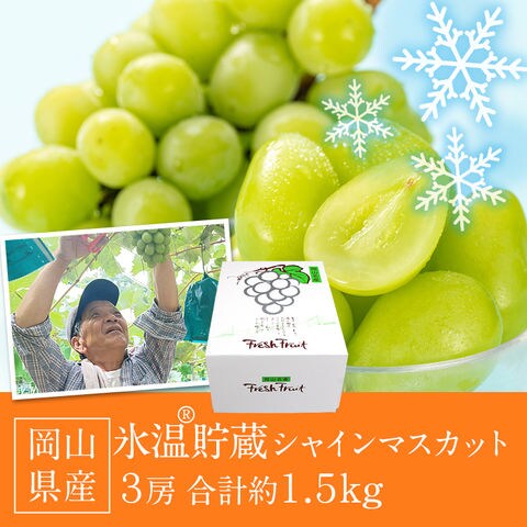 シャインマスカット 3房 1.5kg以上 岡山県産 氷温貯蔵 高級 贈答 ぶどう ブドウ 葡萄 送料無料 冷蔵便 お取り寄せグルメ 食品 ギフト お歳暮 産直