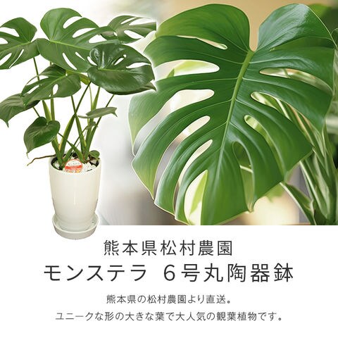 モンステラ 丸型陶器鉢 6寸 高さ60cm程度 観葉植物 熊本県 産直 指定日不可
