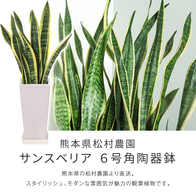 サンスベリア サンセベリア 角高陶器鉢 6寸 高さ70cm程度 観葉植物 熊本県 産直 指定日不可