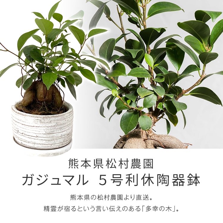ガジュマル 丸型陶器鉢 5寸 高さ20cm程度 観葉植物 熊本県 産直 指定日不可