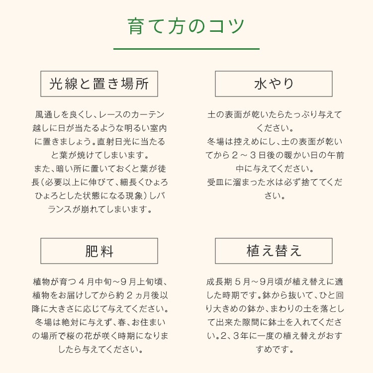 その経験と技術を活かして高品質の観葉植物をお届けします。