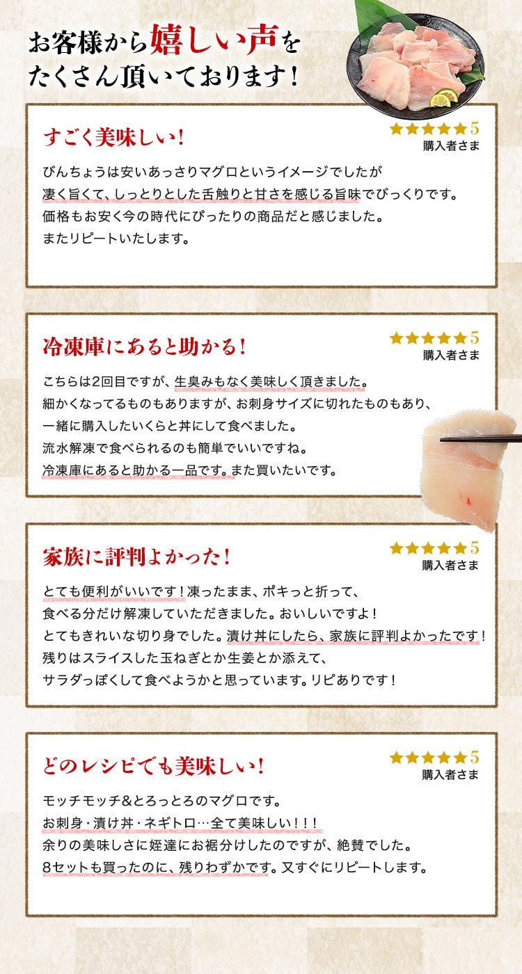 お刺身はもちろん、丼や漬けにも使いやすく、