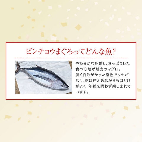 【原材料名】ビンチョウマグロ、精製魚油/pH調整剤、酸化防止剤(V.C、V.E)