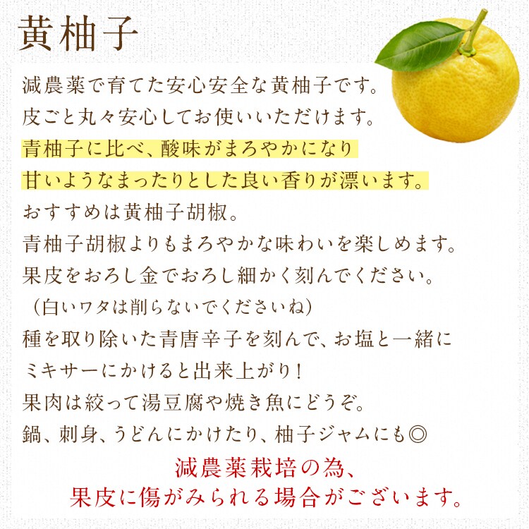 青柚子に比べ、酸味がまろやかになり甘いようなまったりとした良い香りが漂います。