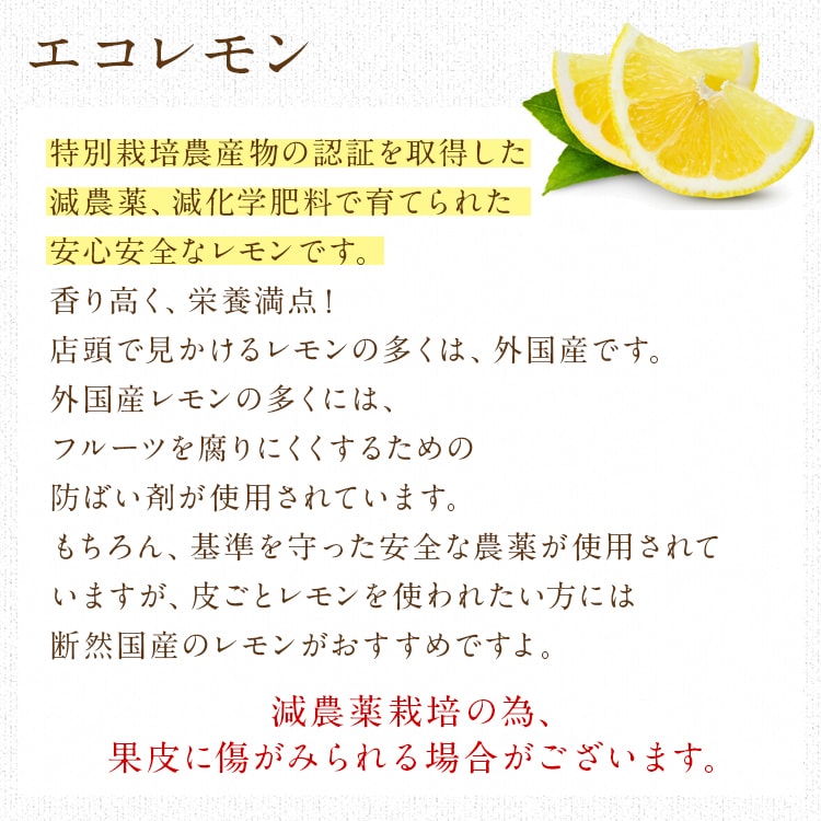 減農薬、減化学肥料で育てられた安心安全なレモンです。