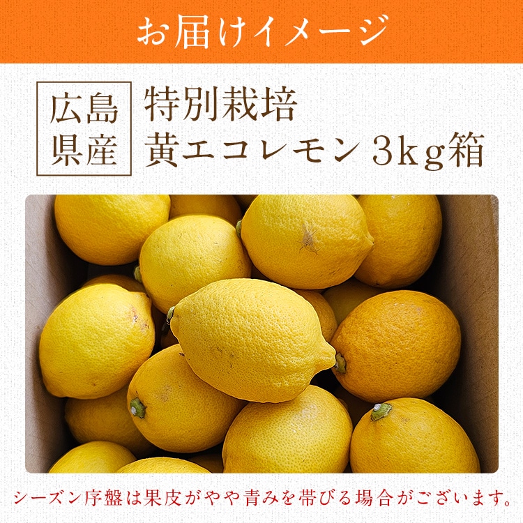 エコレモン 3kg箱詰め 広島県 瀬戸田産 レモン イエロー 特別栽培農産物 減農薬 減化学肥料 指定日不可