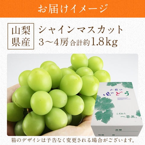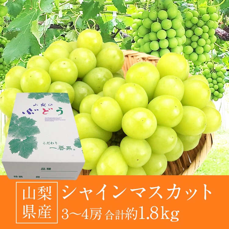 シャインマスカット 山梨県産 3~4房 合計1.8kg以上 高級 大房 白ぶどう ブドウ 葡萄 化粧箱 産直 産地直送 冷蔵便【9月上旬~10月下旬頃・期間内発送予定】【最安値に挑戦!12200円→220円OFF★10980円セール】