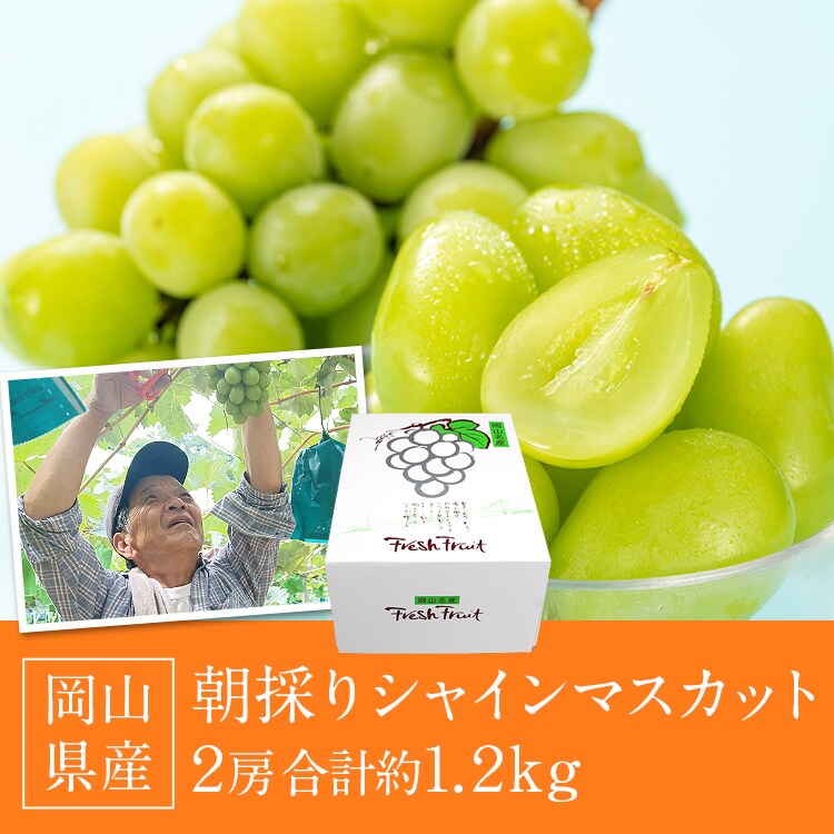 シャインマスカット 朝採り 岡山県産 2房 合計1.2kg (1房600g) 朝採れ 冷蔵便 お取り寄せグルメ 食品 ギフト お歳暮 産直【10月上旬~中旬頃・期間内発送予定】【最安値に挑戦!11180円→1179円OFF★10001円セール】