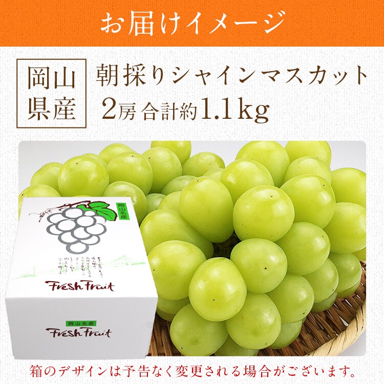 シャインマスカット 朝採り 2房 合計1.1kg (1房550g) 岡山県産 種なしぶどう 葡萄 ブドウ 産直 指定日不可【10月上旬~中旬頃・期間内発送予定】【最安値に挑戦!10001円→1000円OFF★9001円セール】