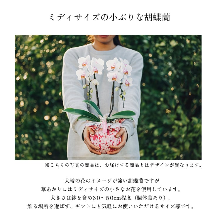 大輪のイメージの強い胡蝶蘭ですが、ミディサイズにすることで、