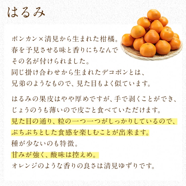 はるみは、ポンカン×清見から生まれた柑橘で、
