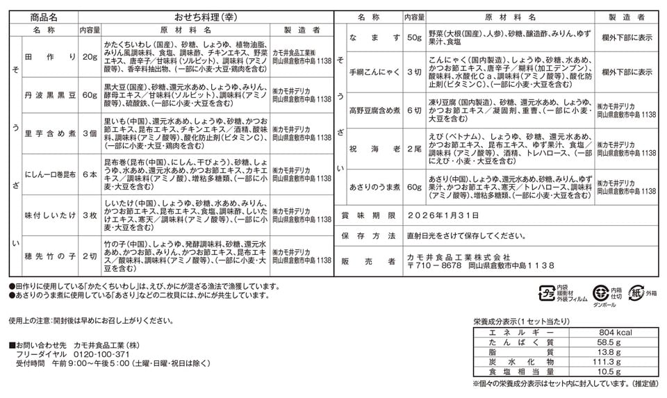 おせち 和風おせち 2026年 鴨井本舗 老舗の和風おせち 『幸(さち)』11品 1-2人前【早割12/18まで通常4,980円→4780円セール】