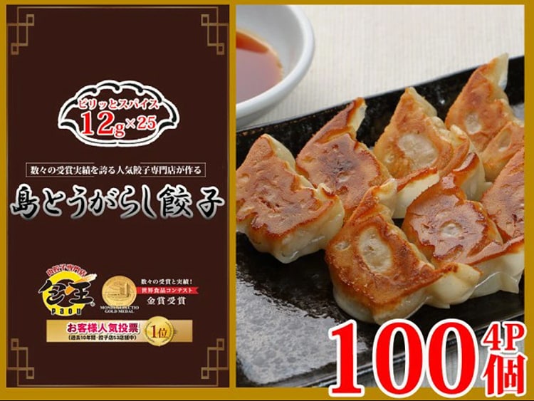 餃子 取り寄せ 島とうがらし餃子 12g 100個 (25個×4P) メディア掲載 受賞歴 多数! paou 包王 冷凍便 送料無料 お取り寄せグルメ 食品 産直