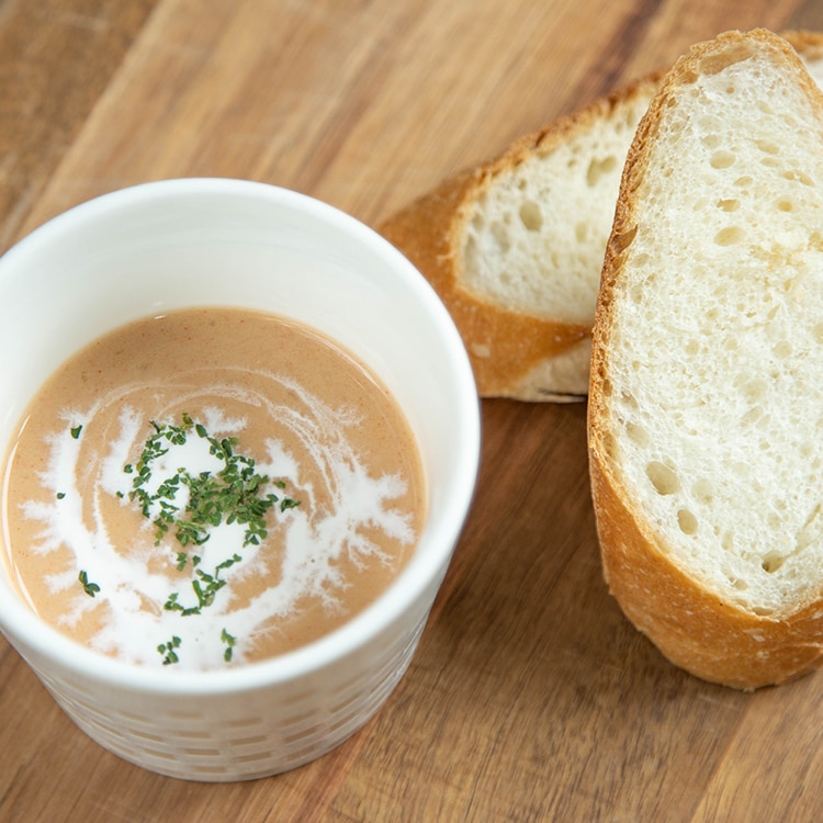 濃厚でクリーミーなビスクソースに仕立て上げました。