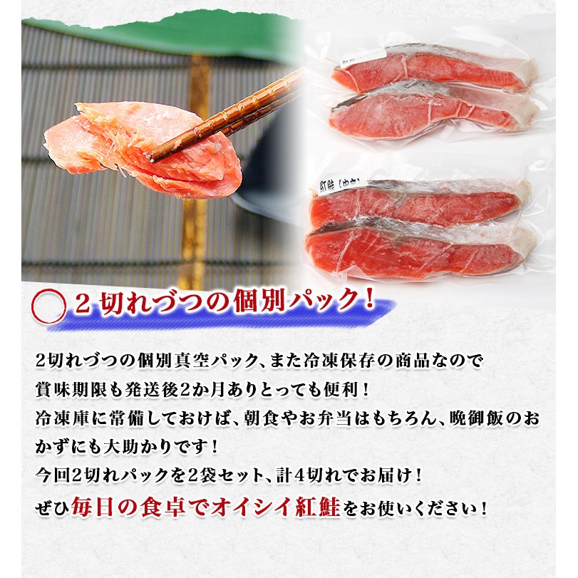 鮭 紅じゃけ 切り身 4切れ(2切入× 2パック) 送料無料 冷凍便 お取り寄せグルメ 食品 冬ギフト 海鮮