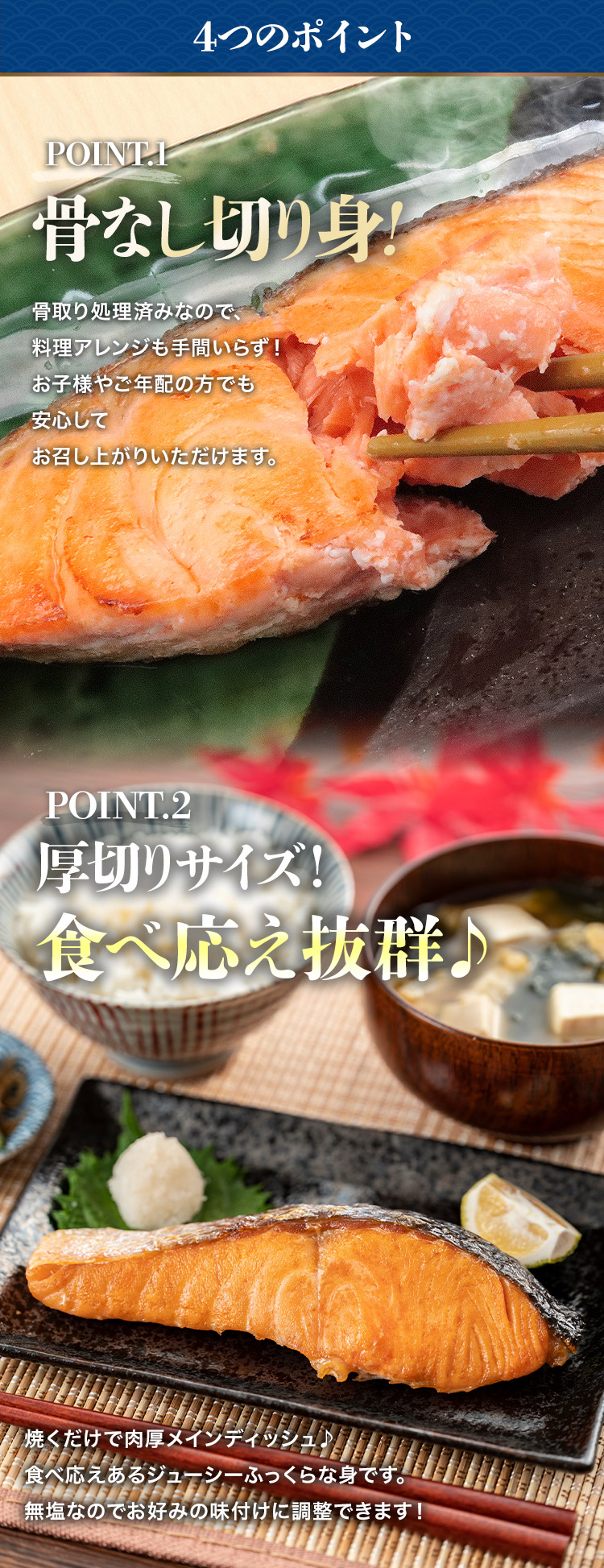 肉厚でふっくらジューシーな鮭の身は食べ応え抜群!