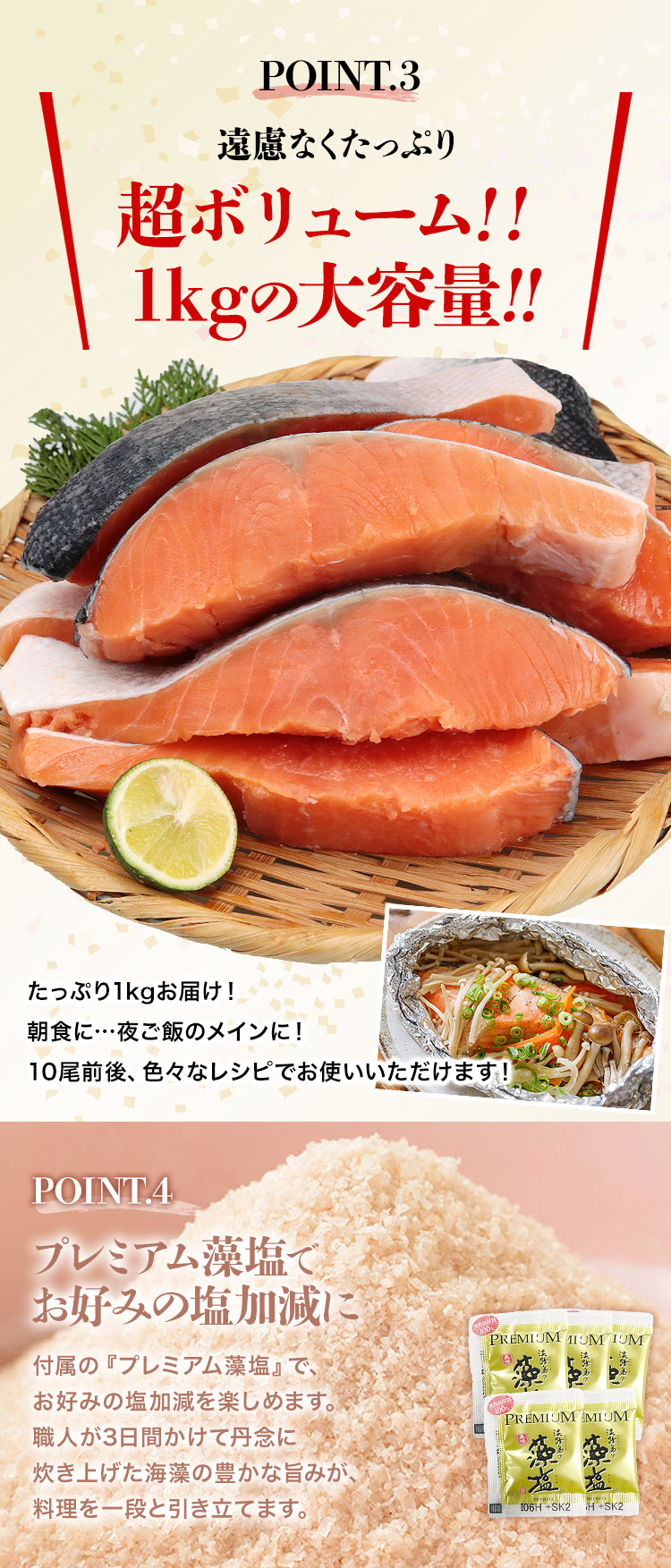 銀鮭 1kg(藻塩付)