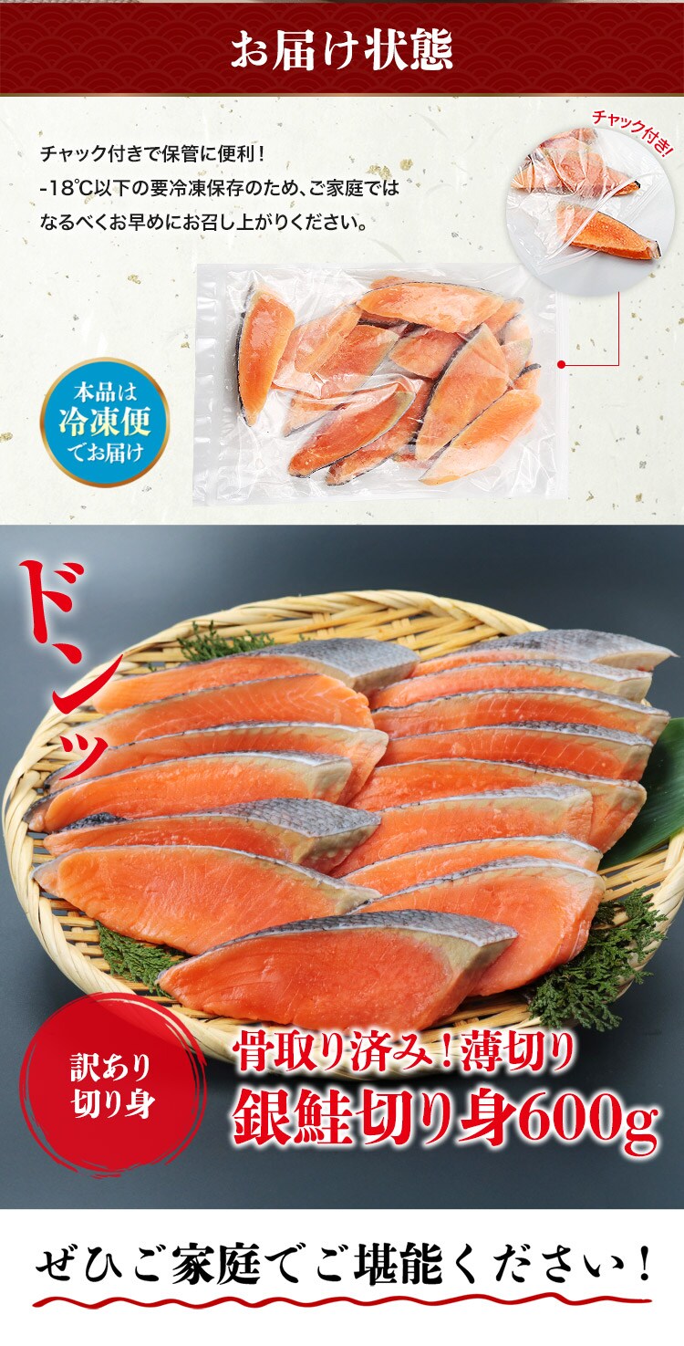 銀鮭 骨取り 切身 600g(15切) 薄塩 訳あり 処理済み チリ産地 さけ しゃけ 鮭 骨なし 薄切り お弁当 時短