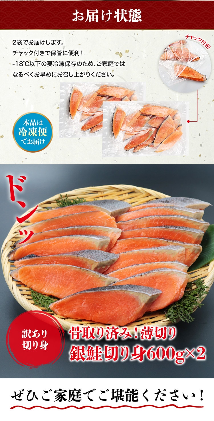 銀鮭 骨取り 切身 600g(15切) ×2 合計1.2kg 薄塩 訳あり 処理済み チリ産地 さけ しゃけ 鮭 骨なし 薄切り お弁当 時短【最安挑戦!6180円→500円OFF★5680円セール】