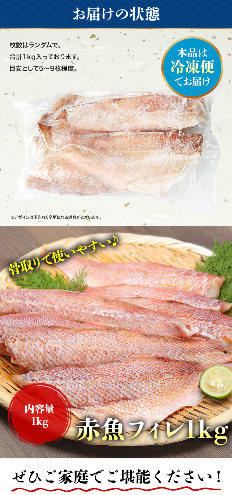 \10日限定★ポイント最大22倍/骨取り 赤魚 フィレ 1kg 冷凍 業務用 無塩 骨なし 処理済<年末指定可>