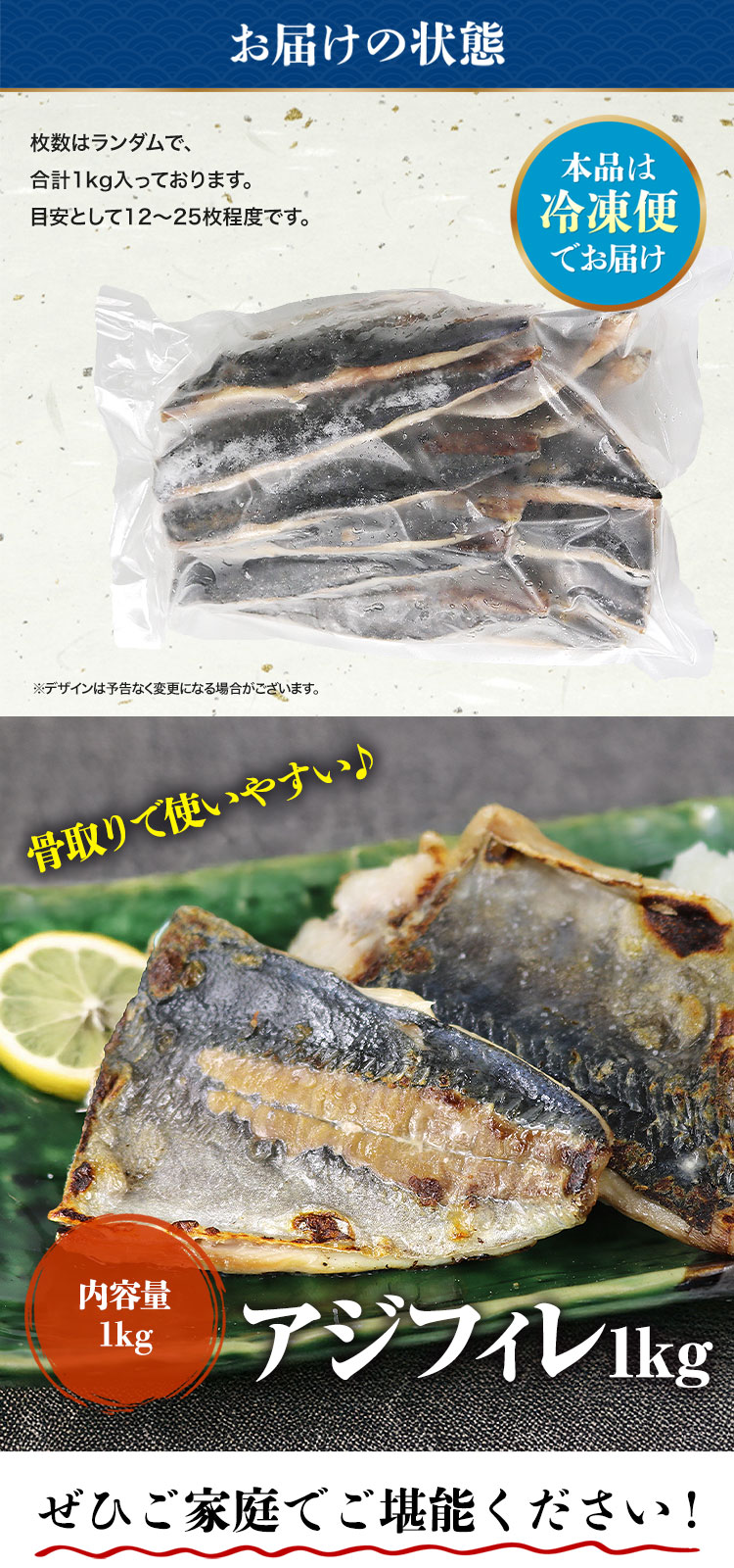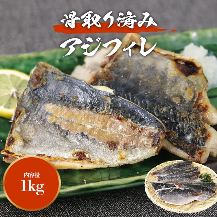 アジ 骨取り フィレ 1kg(12~25枚) 冷凍 業務用 無塩 骨なし 処理済