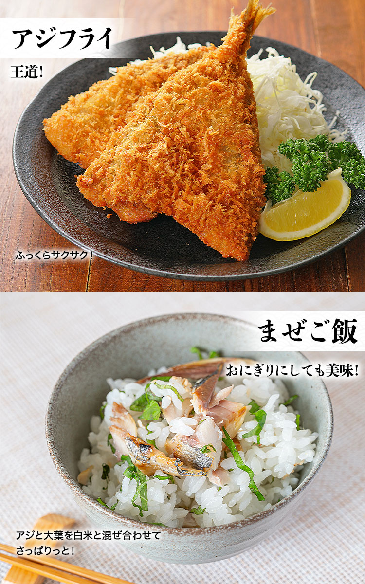 国産アジを丁寧に三枚おろしにし、骨と鱗をしっかり除去しました。
