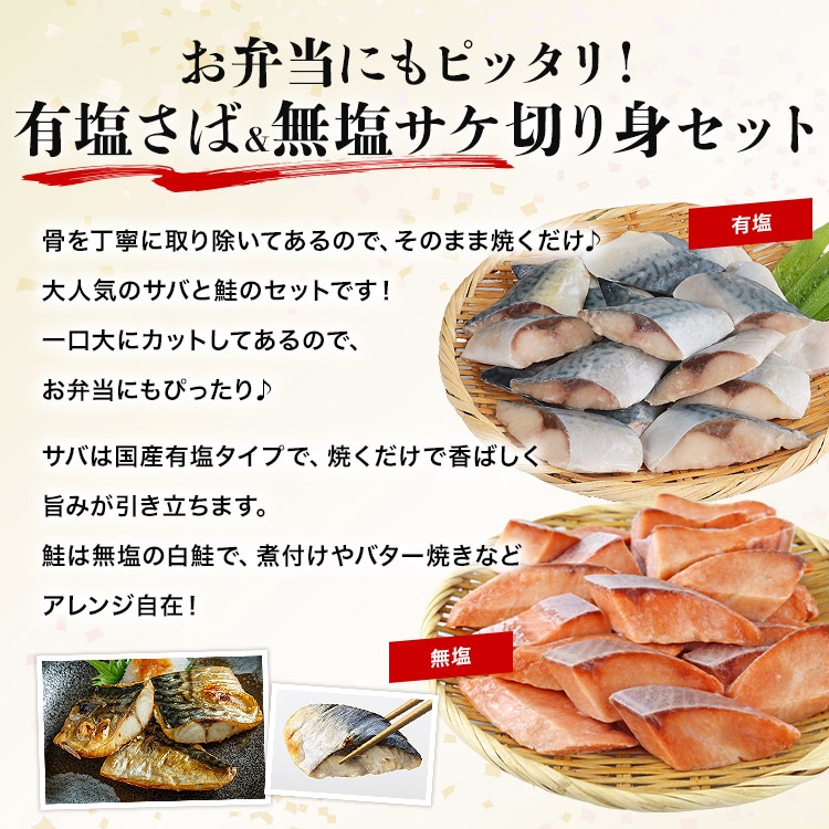 骨取り 有塩さば 無塩さけ 切り身セット 600g(30g×20切)×2 冷凍 骨なし 塩サバ 鯖 サバ 鮭 一口サイズ 【最安値挑戦!6960円→50%OFF★3480円セール】<年末指定可>