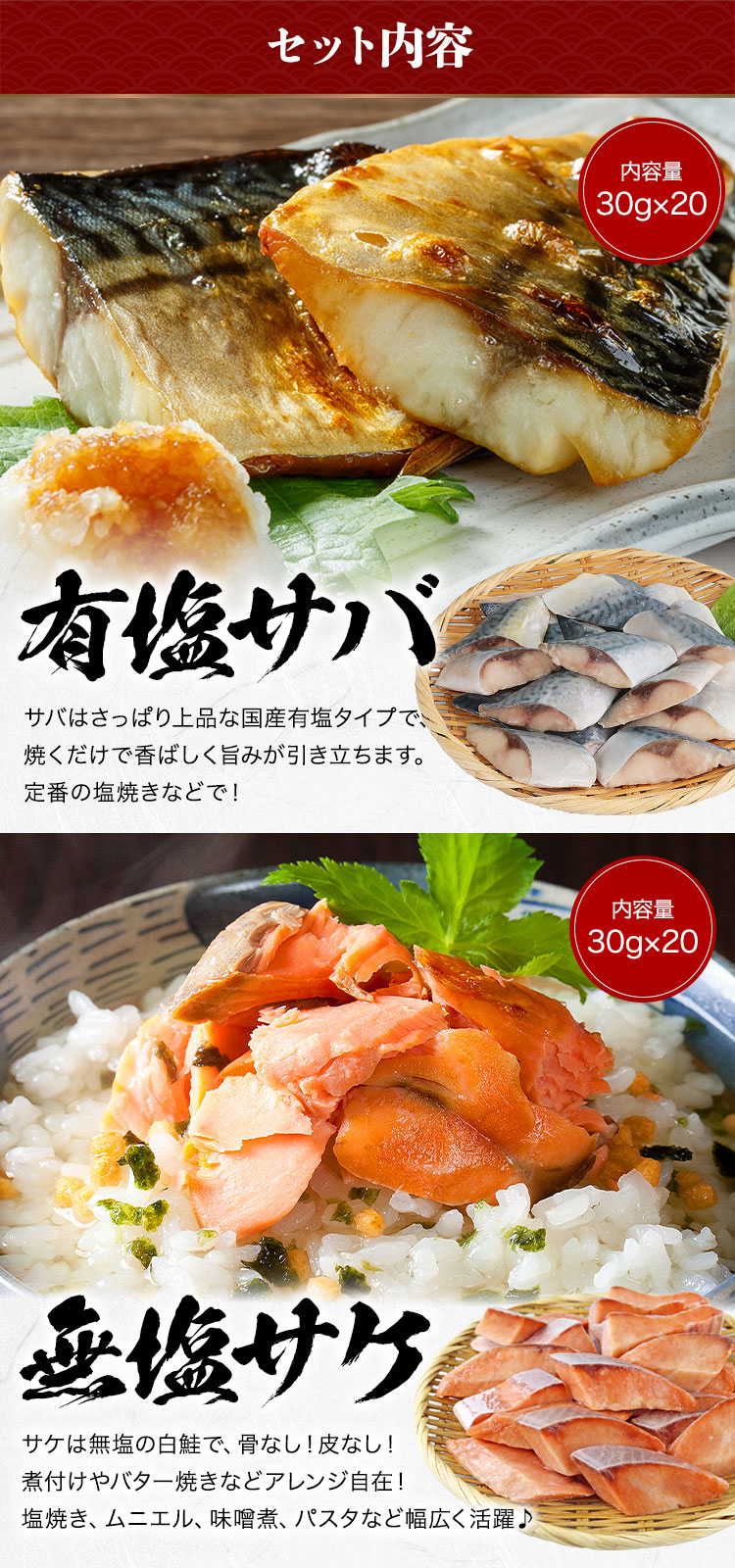 無塩(さば・鮭)各20切