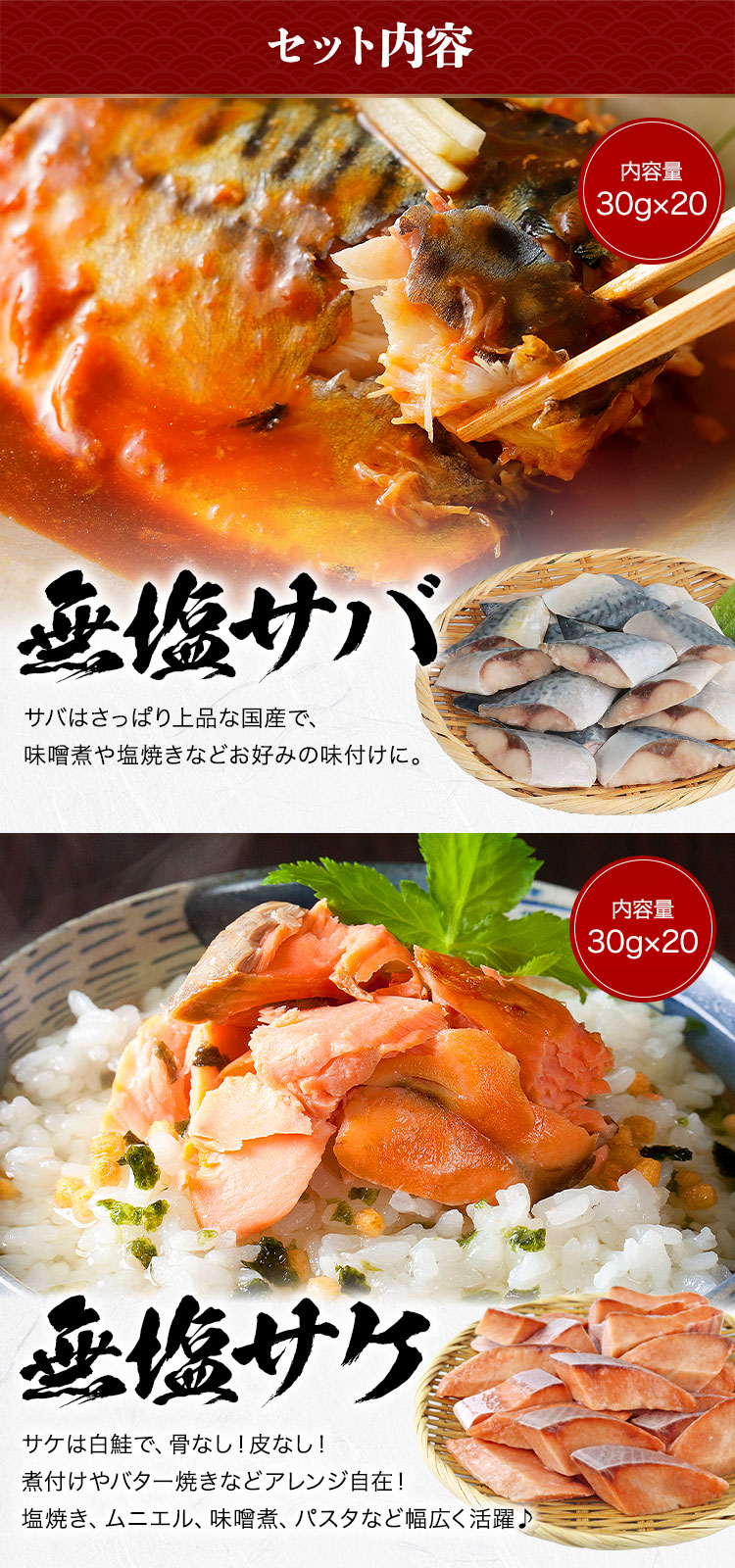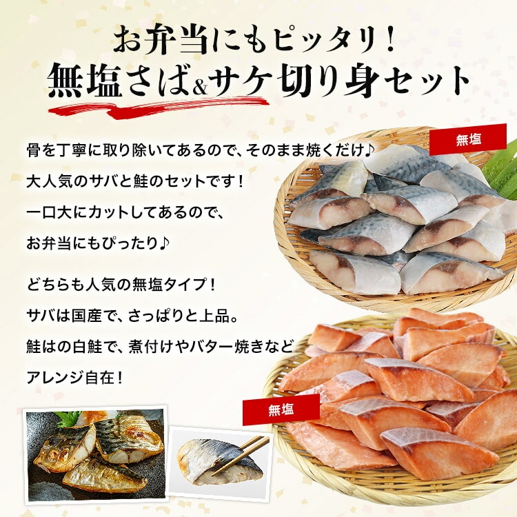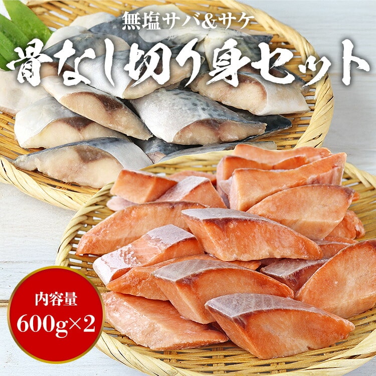 骨取り 無塩さば 無塩さけ 切り身セット 600g(30g×20切)×2 冷凍 骨なし 鯖 サバ 鮭 一口サイズ 【最安値挑戦!6960円→50%OFF★3480円セール】<年末指定可>