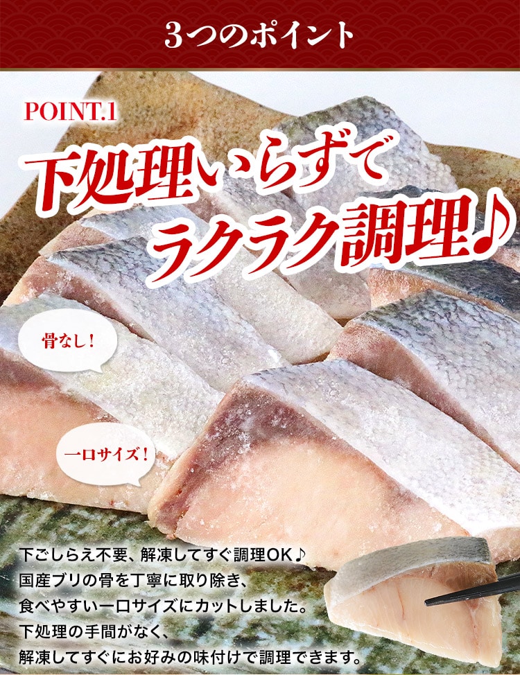 骨を丁寧に取り除いた国産ブリを、一口サイズにカット。