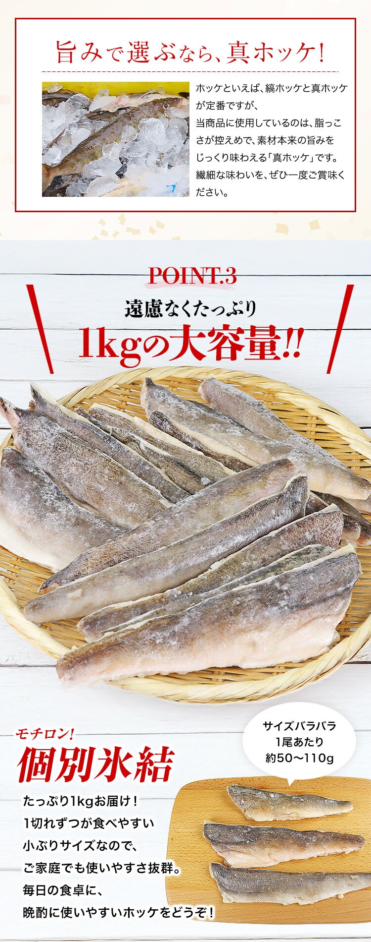 1kgの大ボリュームなので、毎日の食卓に、晩酌に使いやすいホッケをどうぞ!